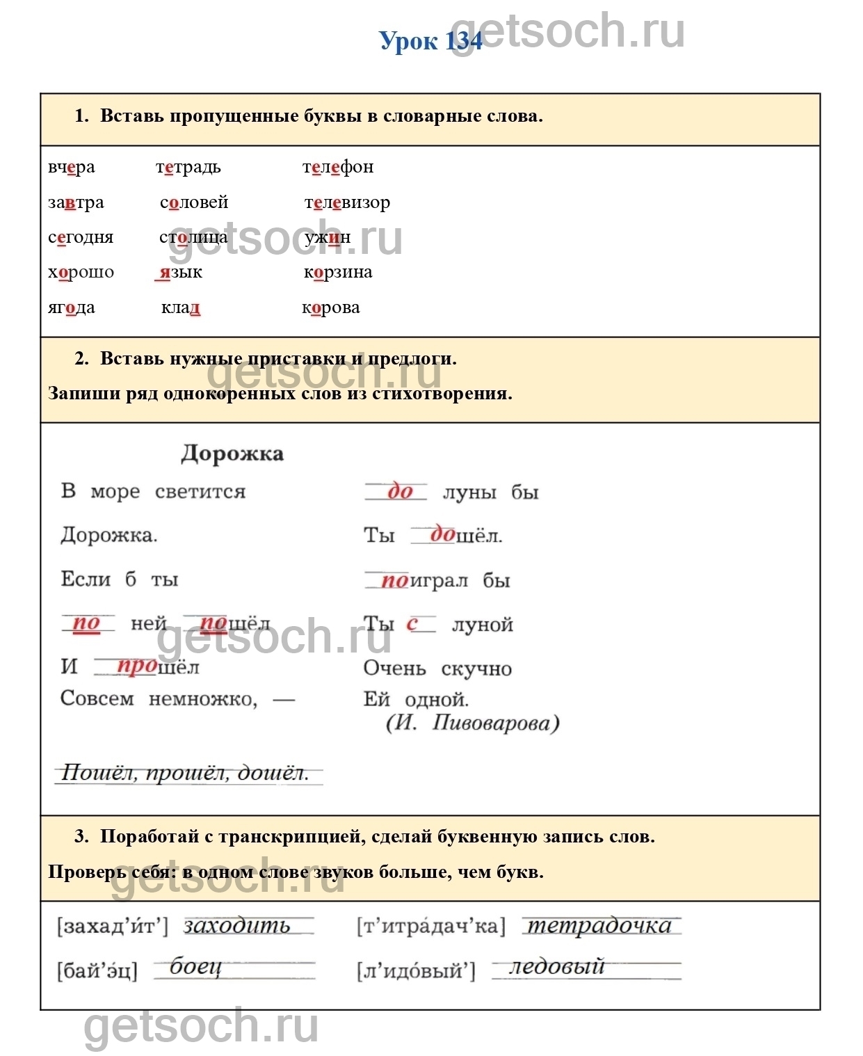 Рассмотрим ответы на задания рабочей тетради по русскому языку для 2 класса Кузнецова Страница 32Вставь пропущенные буквы в словарные слова.