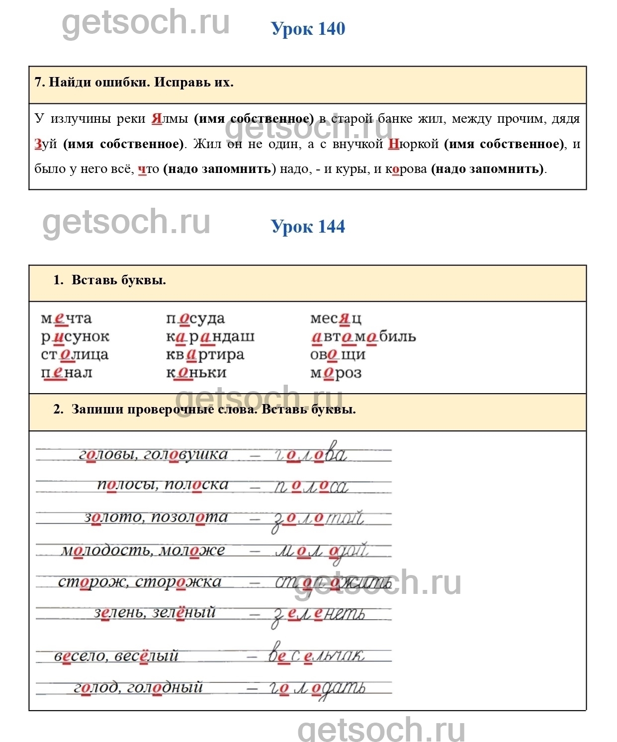 Рассмотрим ответы на задания рабочей тетради по русскому языку для 2 класса Кузнецова Страница 407. Найди ошибки. Исправь их.