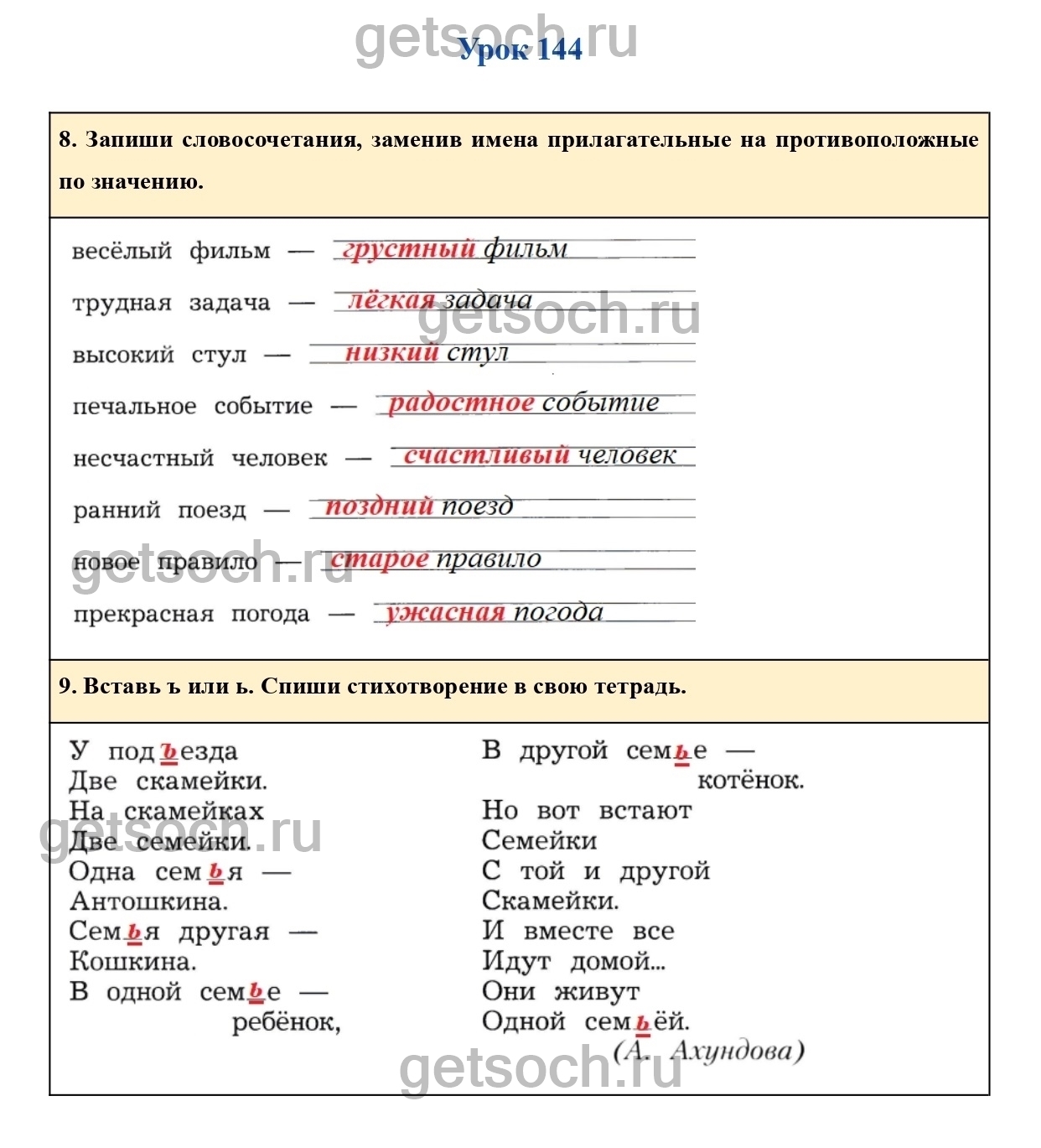 9. Вставь ъ или ь. Спиши стихотворение в свою тетрадь.