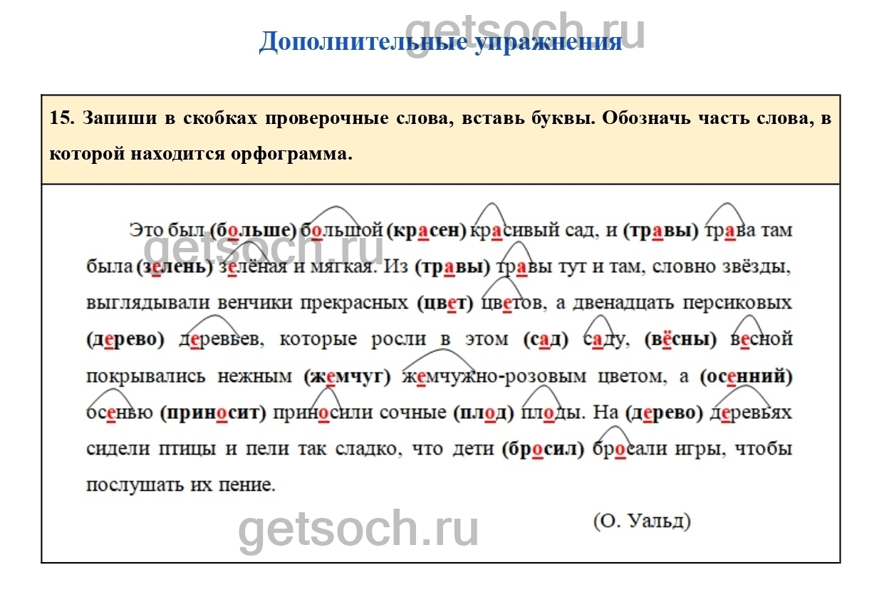 Рассмотрим ответы на задания рабочей тетради по русскому языку для 2 класса Кузнецова Страница 5615. Запиши в скобках проверочные слова, вставь буквы. Обозначь часть слова, в которой находится орфограмма.