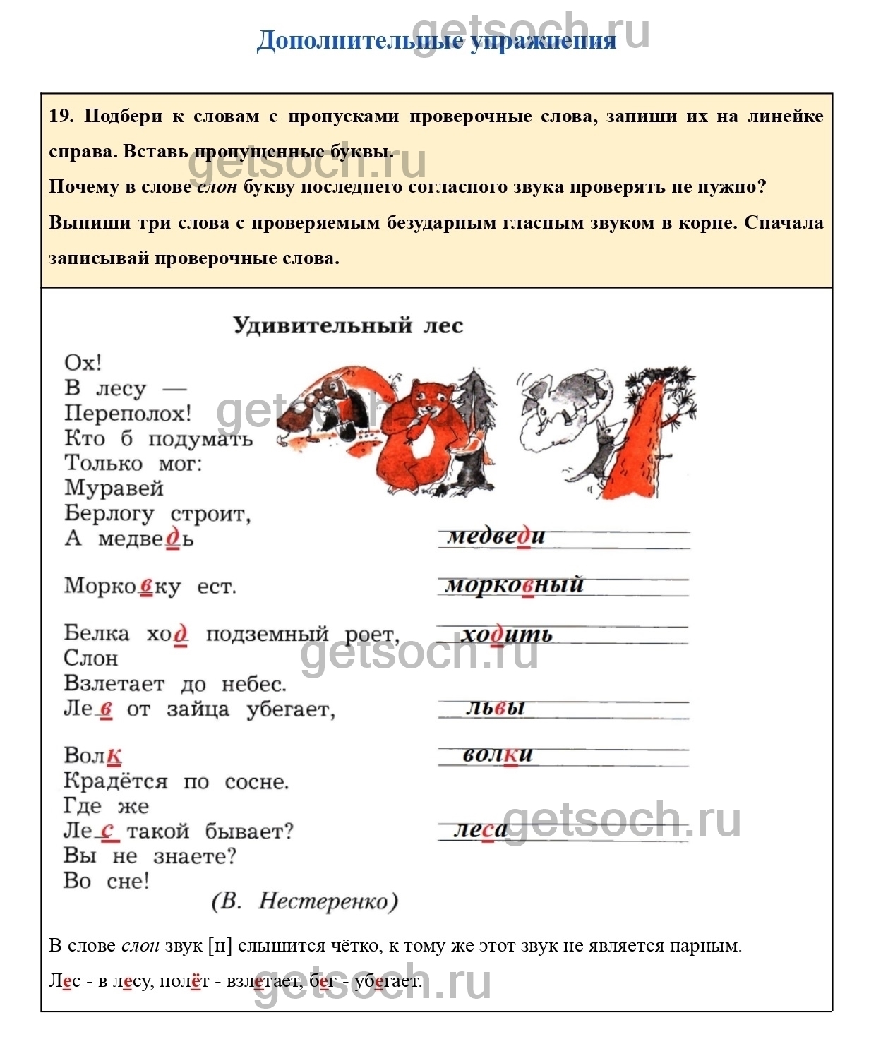 Рассмотрим ответы на задания рабочей тетради по русскому языку для 2 класса Кузнецова Страница 6019. Подбери к словам с пропусками проверочные слова, запиши их на линейке справа. Вставь пропущенные буквы.