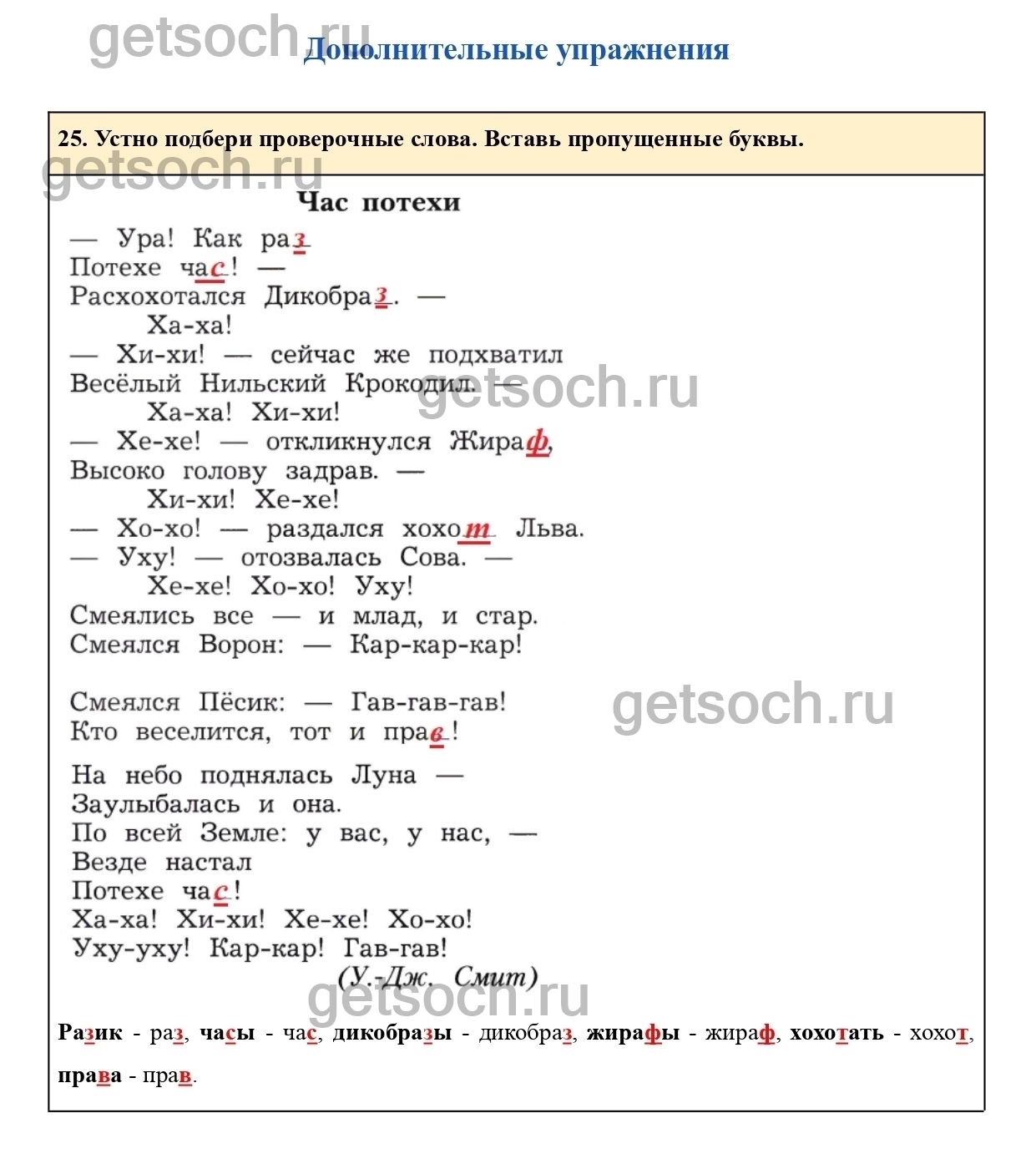 Рассмотрим ответы на задания рабочей тетради по русскому языку для 2 класса Кузнецова Страница 6525. Устно подбери проверочные слова. Вставь пропущенные буквы.