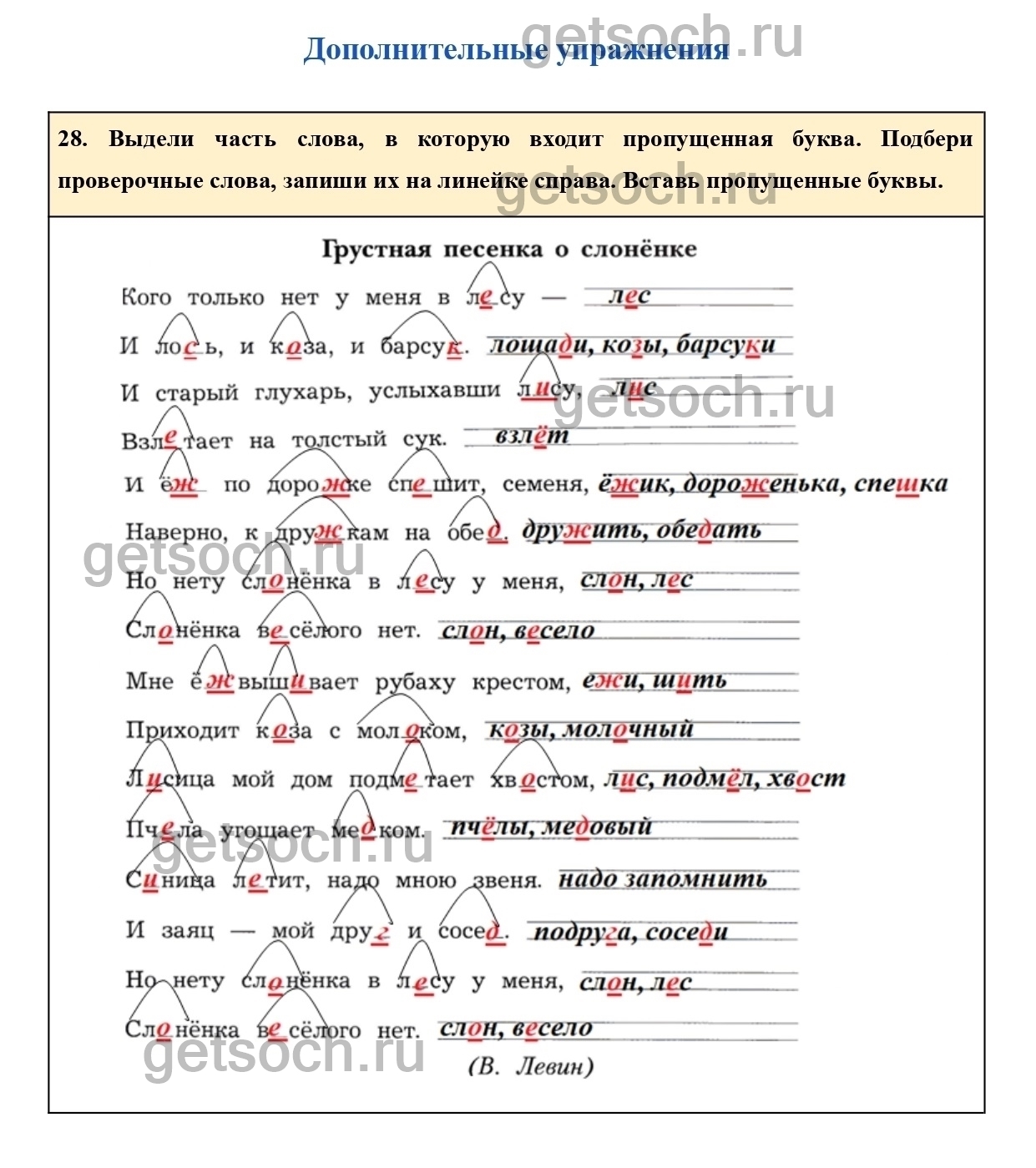 Рассмотрим ответы на задания рабочей тетради по русскому языку для 2 класса Кузнецова Страница 6728. Выдели часть слова, в которую входит пропущенная буква. Подбери проверочные слова, запиши их на линейке справа. Вставь пропущенные буквы.
