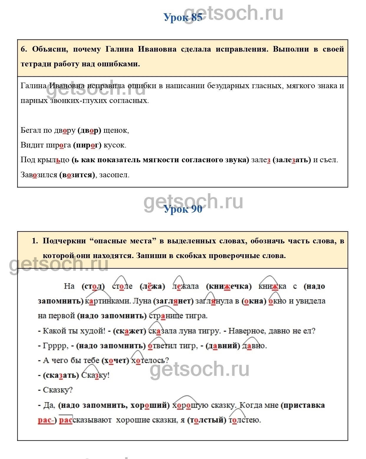 Рассмотрим ответы на задания рабочей тетради по русскому языку для 2 класса Кузнецова Страница 76. Объясни, почему Галина Ивановна сделала исправления. Выполни в своей тетради работу над ошибками.