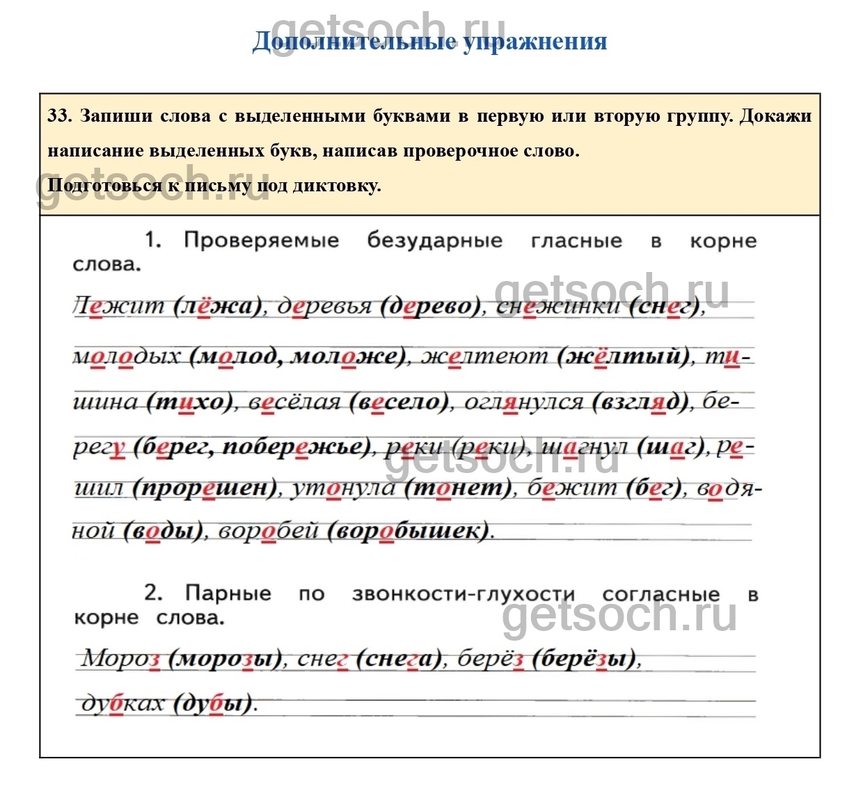 Рассмотрим ответы на задания рабочей тетради по русскому языку для 2 класса Кузнецова Страница 71″33. Запиши слова с выделенными буквами в первую или вторую группу. Докажи написание выделенных букв, написав проверочное слово.