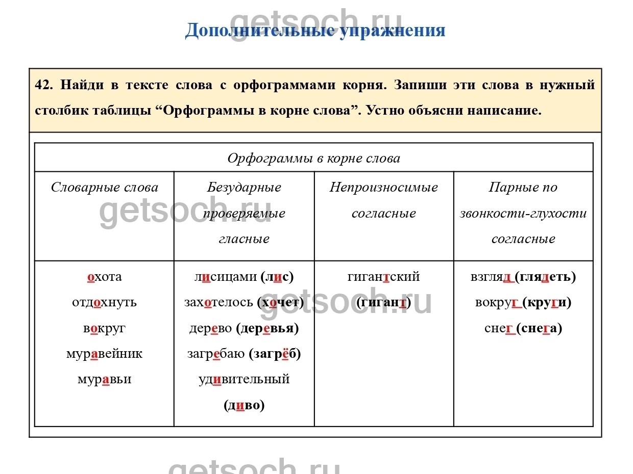Рассмотрим ответы на задания рабочей тетради по русскому языку для 2 класса Кузнецова Страница 7742. Найди в тексте слова с орфограммами корня. Запиши эти слова в нужный столбик таблицы “Орфограммы в корне слова”. Устно объясни написание.