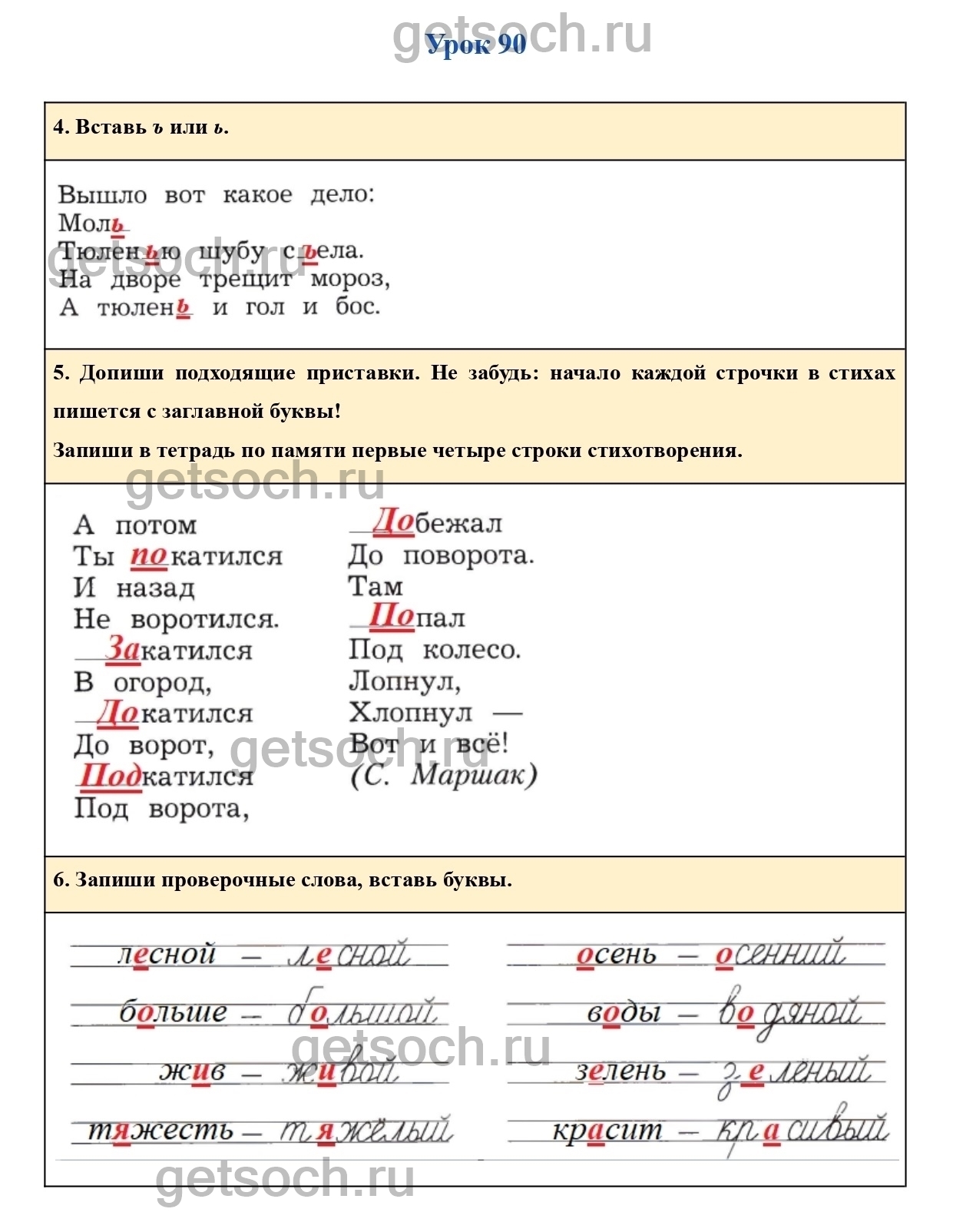 Рассмотрим ответы на задания рабочей тетради по русскому языку для 2 класса Кузнецова Страница 94. Вставь ъ или ь.
