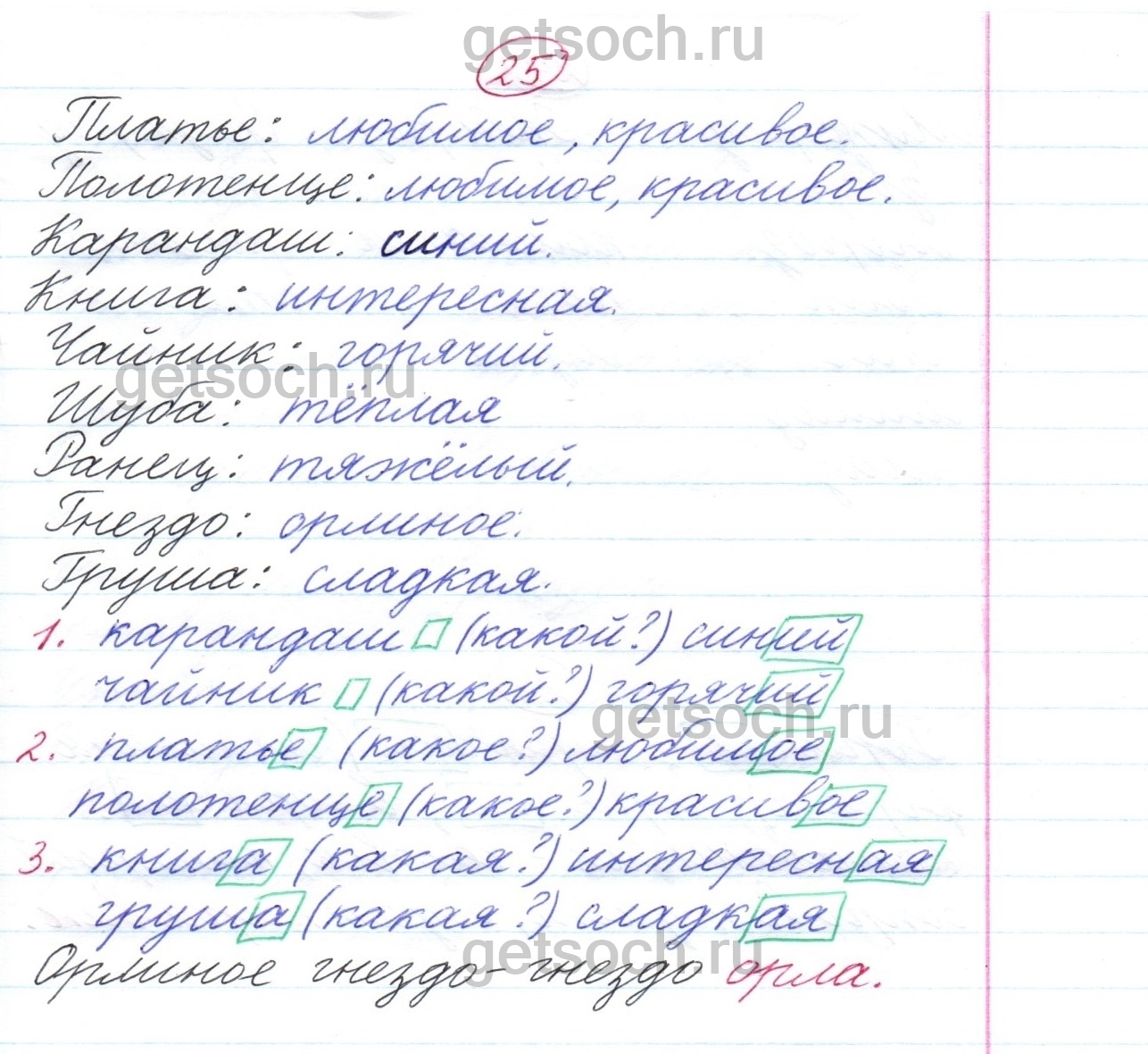 Упражнение 25- ГДЗ по Русскому языку для 2 класса Тетрадь для самостоятельной работы Байкова. Часть 1