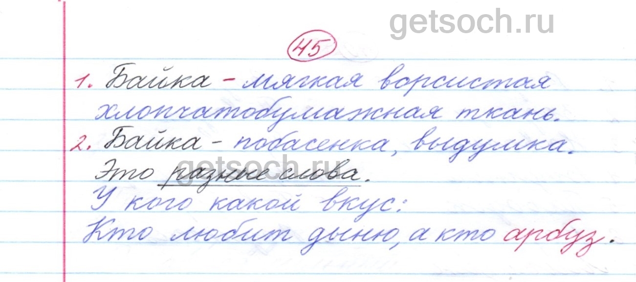 Упражнение 45- ГДЗ по Русскому языку для 2 класса Тетрадь для самостоятельной работы Байкова. Часть 1
