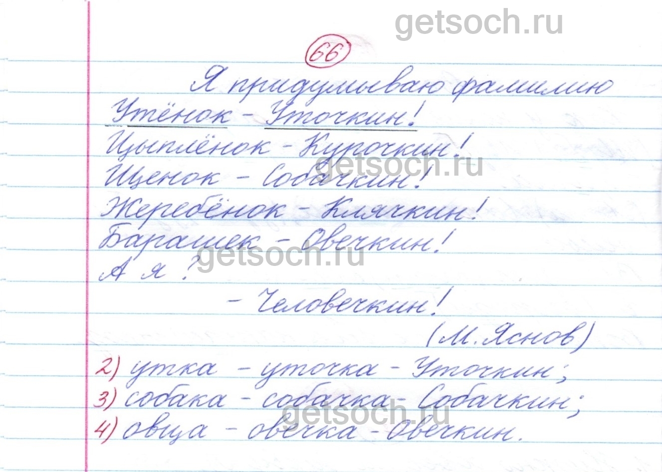 Упражнение 66- ГДЗ по Русскому языку для 2 класса Тетрадь для самостоятельной работы Байкова. Часть 1