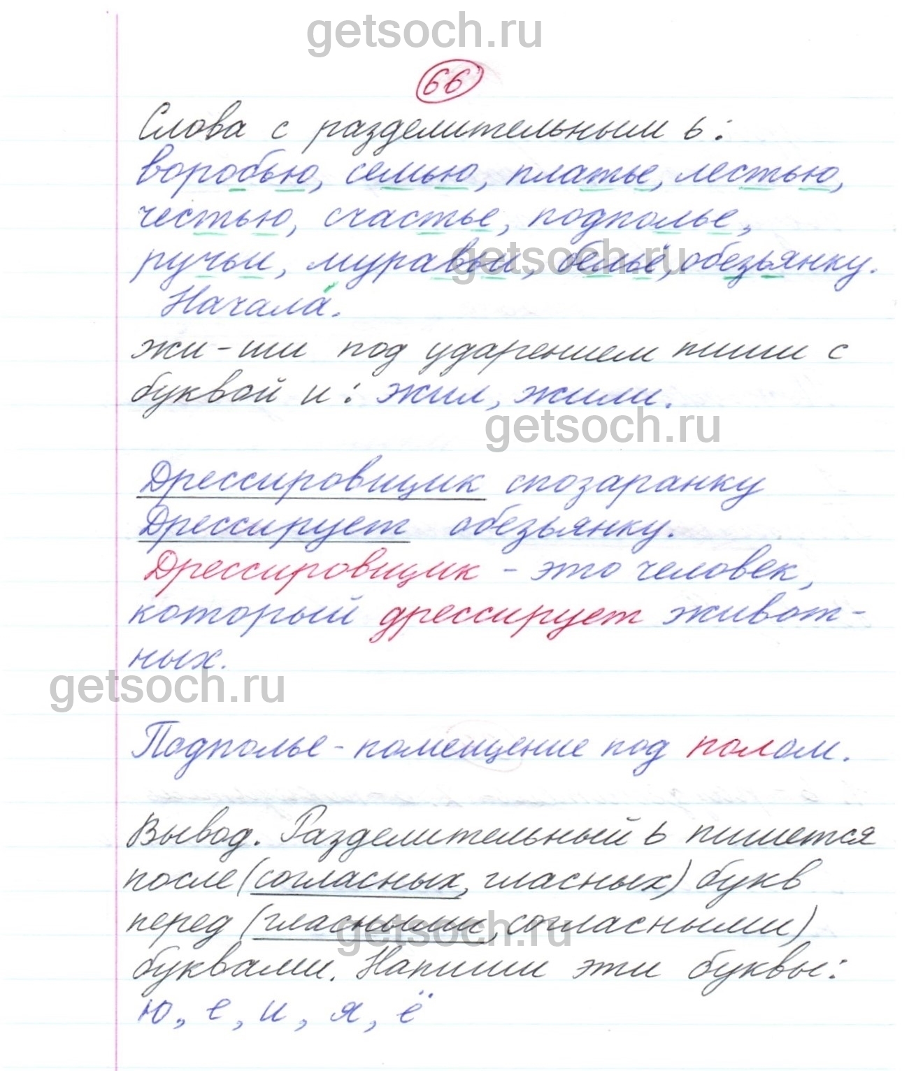 Упражнение 66- ГДЗ по Русскому языку для 2 класса Тетрадь для самостоятельной работы Байкова. Часть 2