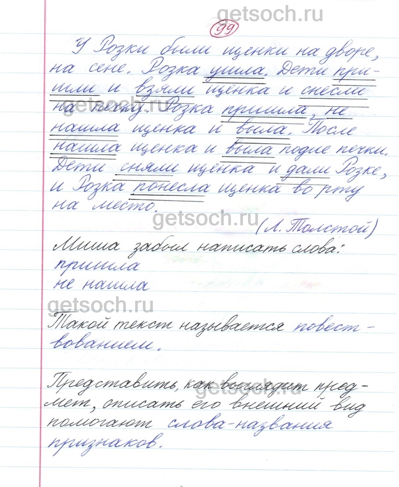 Упражнение 99- ГДЗ по Русскому языку для 2 класса Тетрадь для самостоятельной работы Байкова. Часть 2