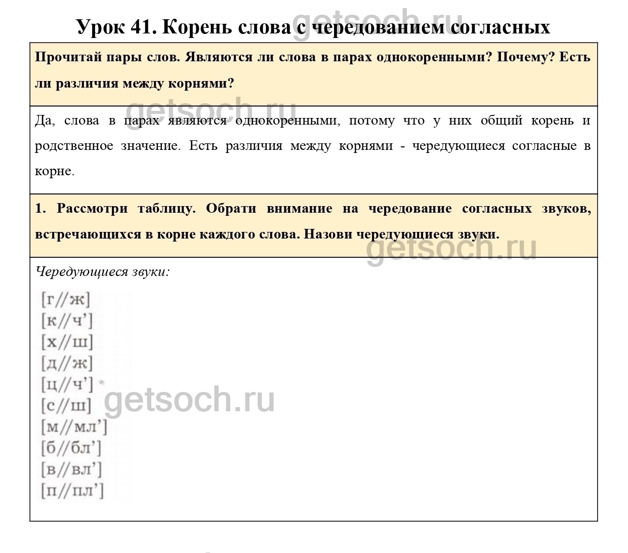 1. Рассмотри таблицу. Обрати внимание на чередование согласных звуков, встречающихся в корне каждого слова. Назови чередующиеся звуки.