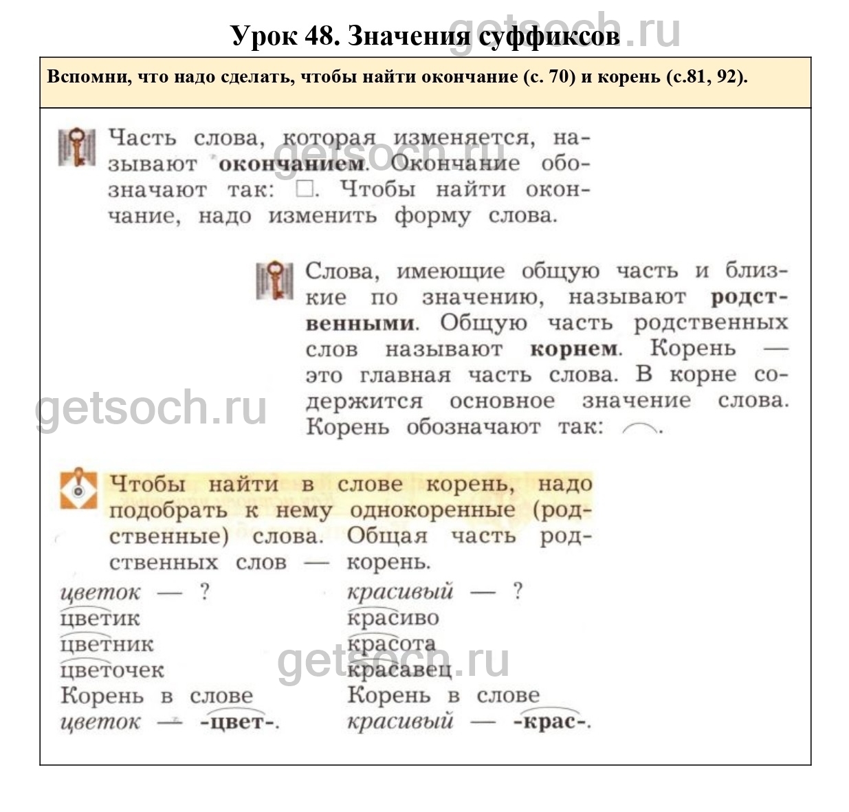 Вспомни, что надо сделать, чтобы найти окончание (с. 70) и корень (с.81, 92).