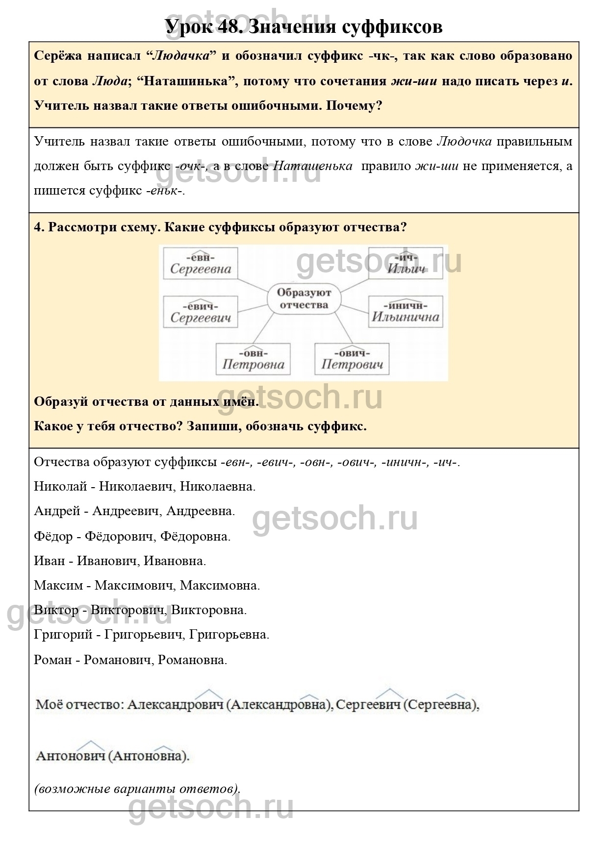 “4. Рассмотри схему. Какие суффиксы образуют отчества?