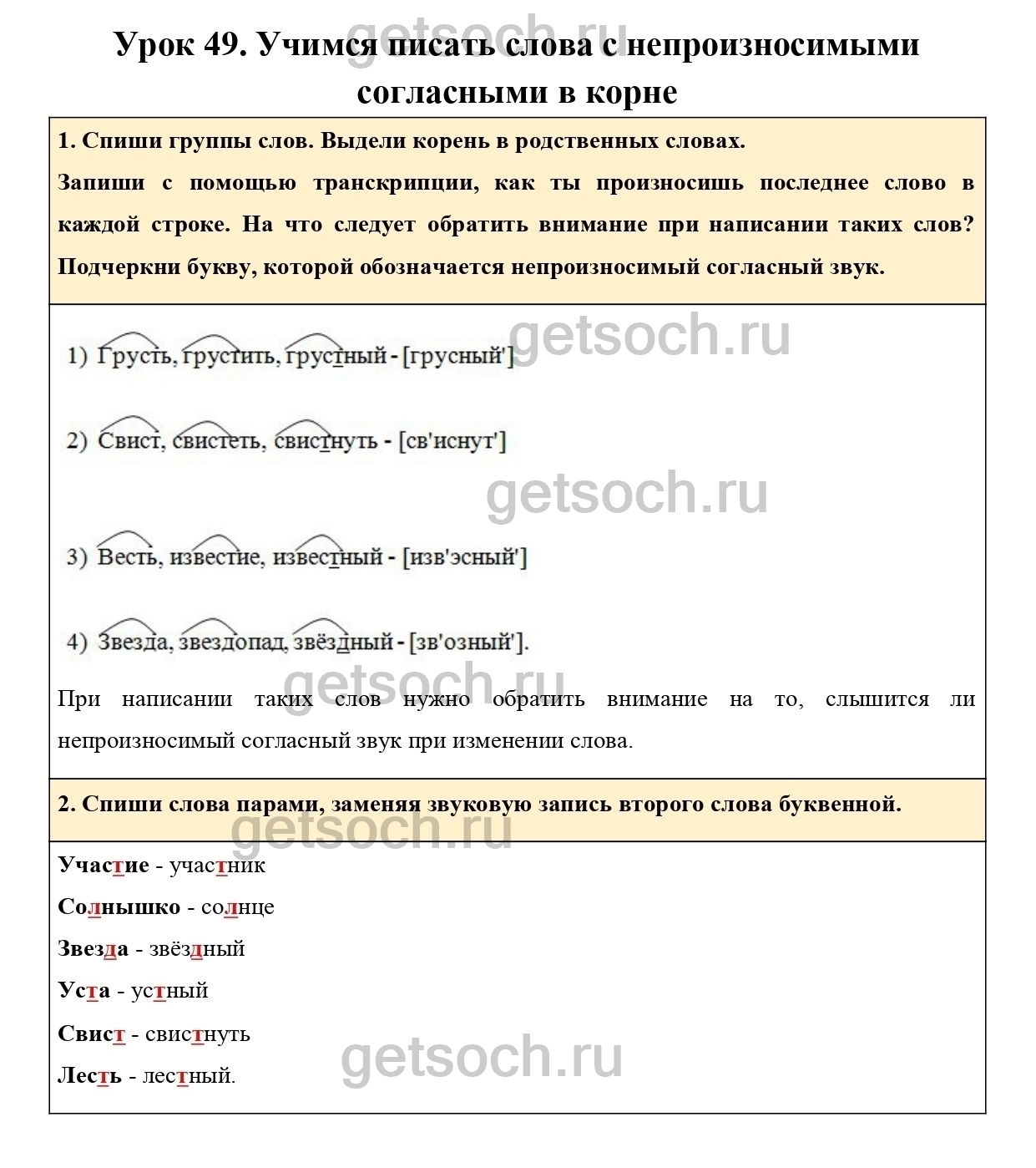 Запиши с помощью транскрипции, как ты произносишь последнее слово в каждой строке. На что следует обратить внимание при написании таких слов? Подчеркни букву, которой обозначается непроизносимый согласный звук.”