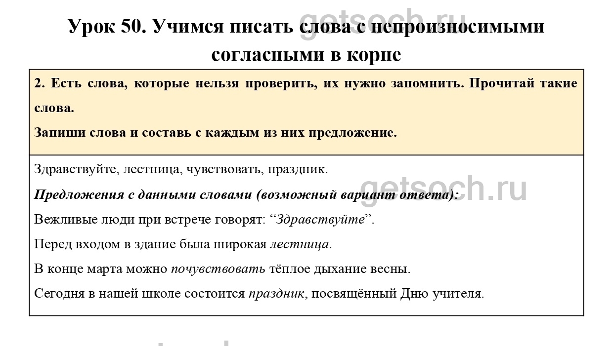 2. Есть слова, которые нельзя проверить, их нужно запомнить. Прочитай такие слова.