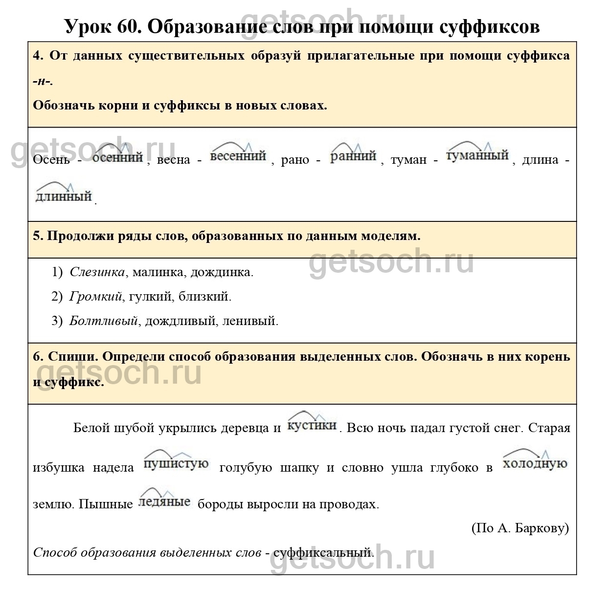 6. Спиши. Определи способ образования выделенных слов. Обозначь в них корень и суффикс.