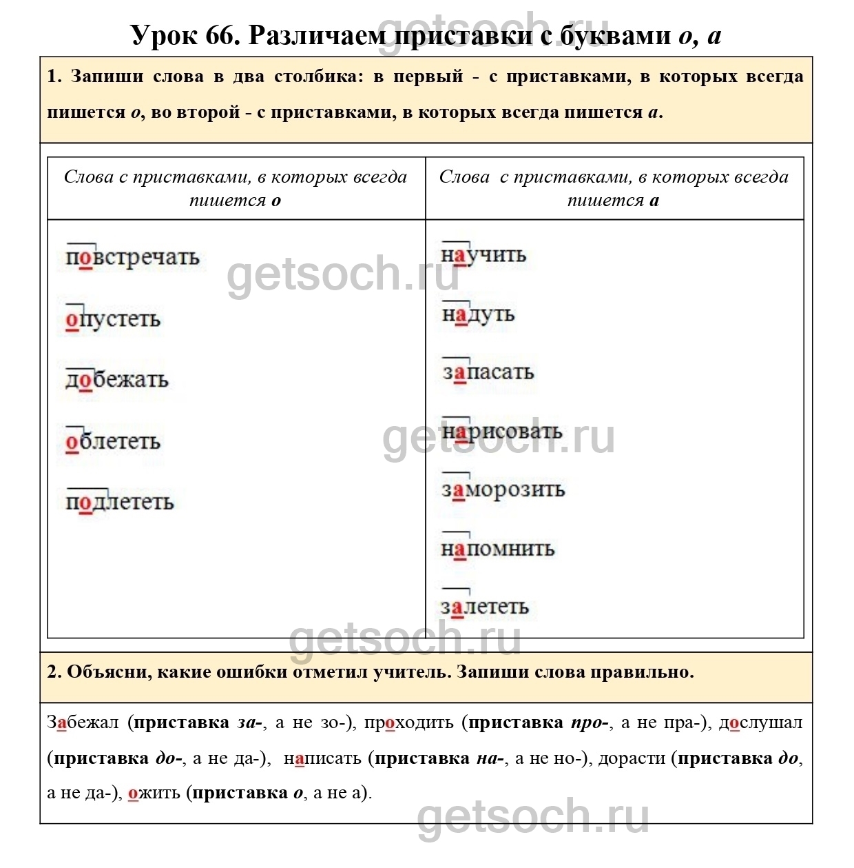 1. Запиши слова в два столбика: в первый – с приставками, в которых всегда пишется о, во второй – с приставками, в которых всегда пишется а.