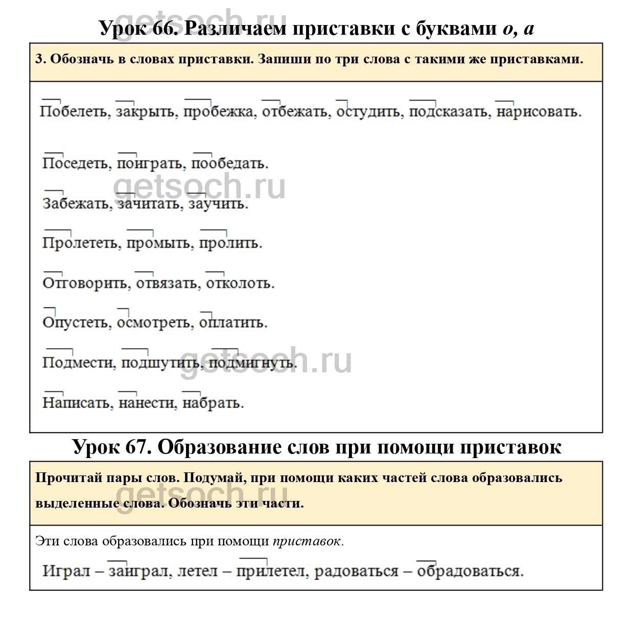 3. Обозначь в словах приставки. Запиши по три слова с такими же приставками.