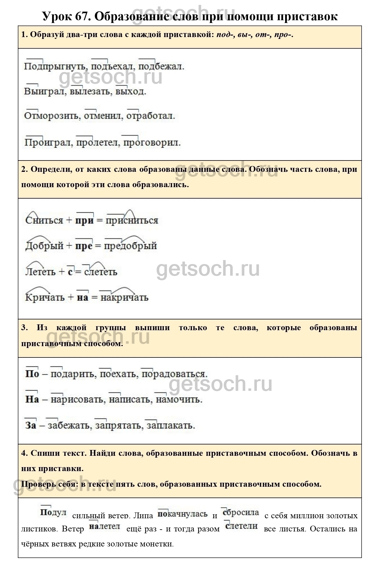 1. Образуй два-три слова с каждой приставкой: под-, вы-, от-, про-.
