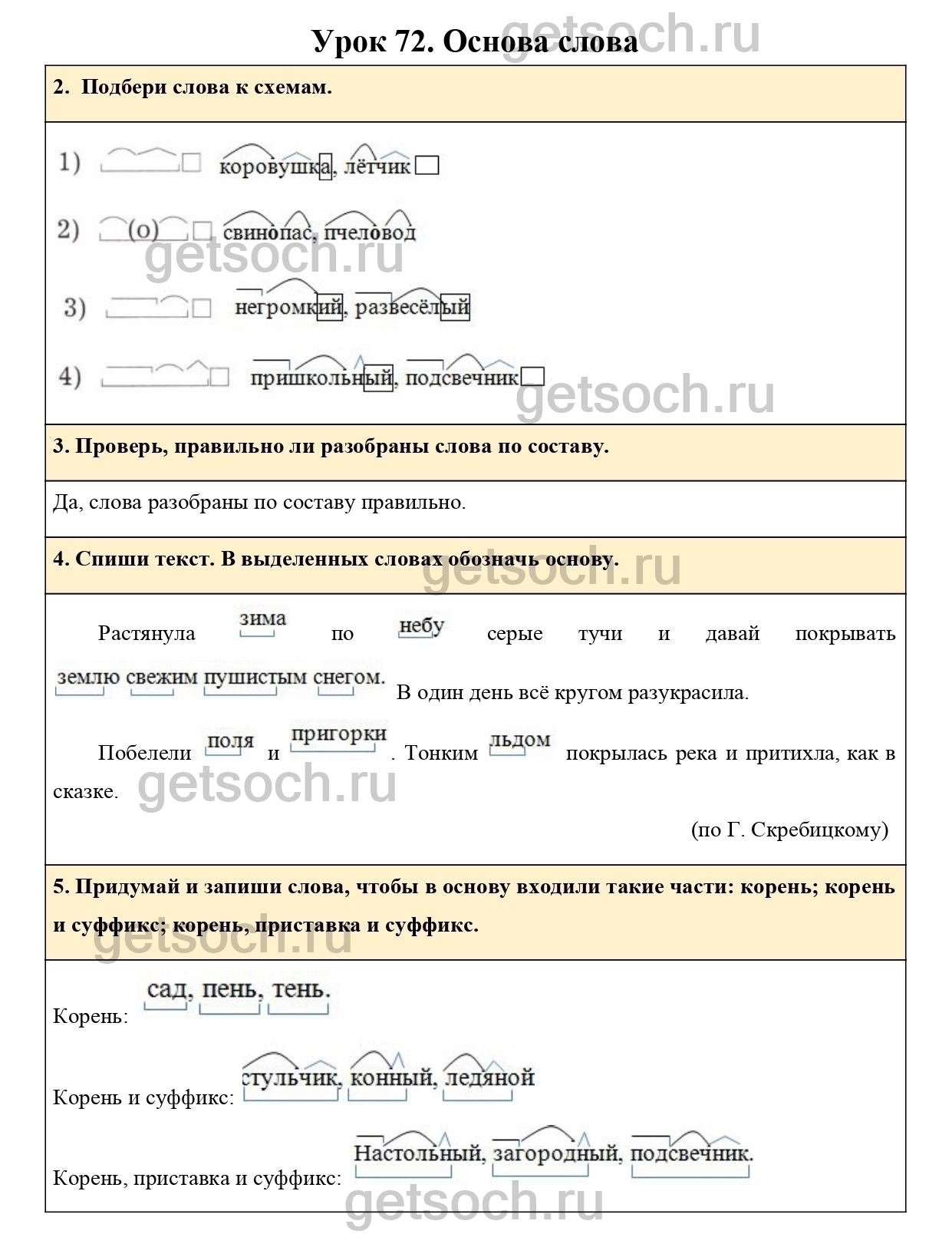 3. Проверь, правильно ли разобраны слова по составу.