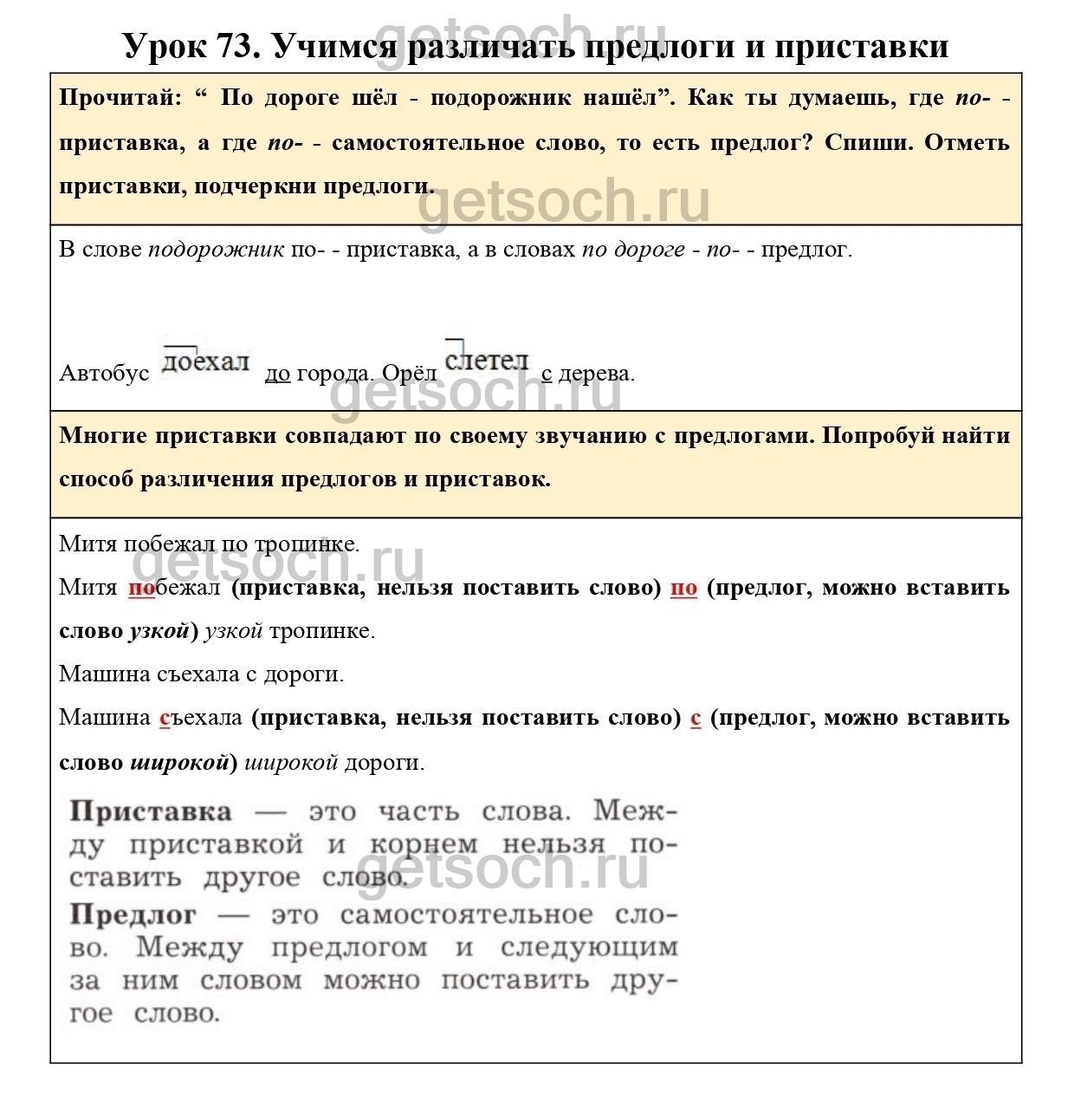 Прочитай: “ По дороге шёл – подорожник нашёл”. Как ты думаешь, где по- – приставка, а где по- – самостоятельное слово, то есть предлог? Спиши. Отметь приставки, подчеркни предлоги.