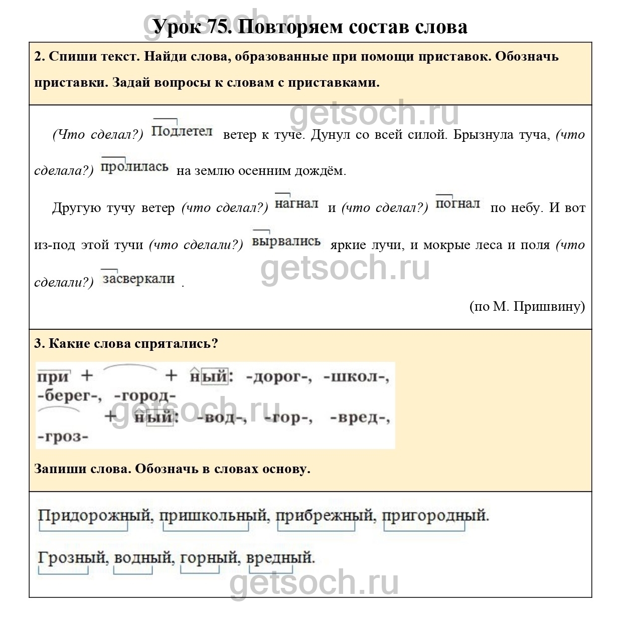 2. Спиши текст. Найди слова, образованные при помощи приставок. Обозначь приставки. Задай вопросы к словам с приставками.