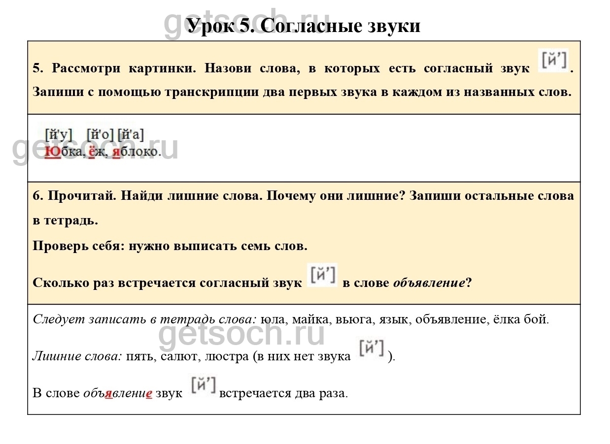 5. Рассмотри картинки. Назови слова, в которых есть согласный звук . Запиши с помощью транскрипции два первых звука в каждом из названных слов.