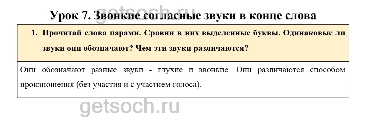 Прочитай слова парами. Сравни в них выделенные буквы. Одинаковые ли звуки они обозначают? Чем эти звуки различаются?