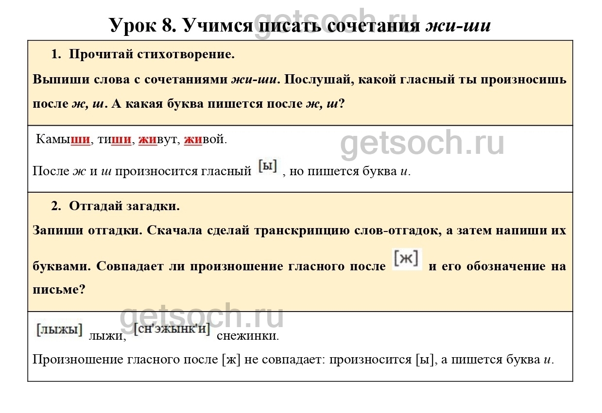 Выпиши слова с сочетаниями жи-ши. Послушай, какой гласный ты произносишь после ж, ш. А какая буква пишется после ж, ш?”
