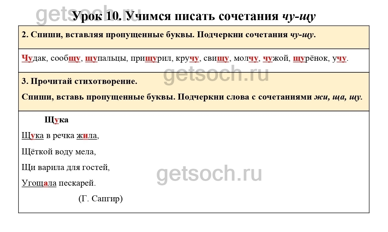 2. Спиши, вставляя пропущенные буквы. Подчеркни сочетания чу-щу.