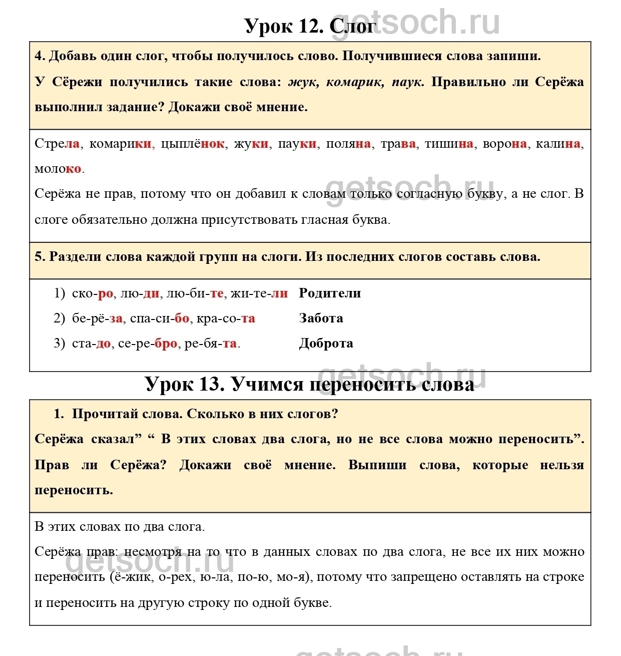 У Сёрежи получились такие слова: жук, комарик, паук. Правильно ли Серёжа выполнил задание? Докажи своё мнение.”