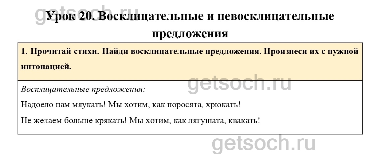 1. Прочитай стихи. Найди восклицательные предложения. Произнеси их с нужной интонацией.