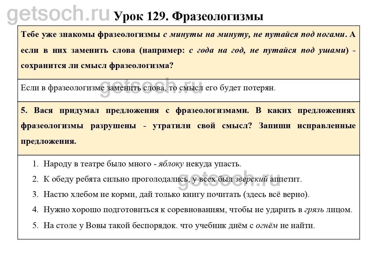 5. Вася придумал предложения с фразеологизмами. В каких предложениях фразеологизмы разрушены – утратили свой смысл? Запиши исправленные предложения.