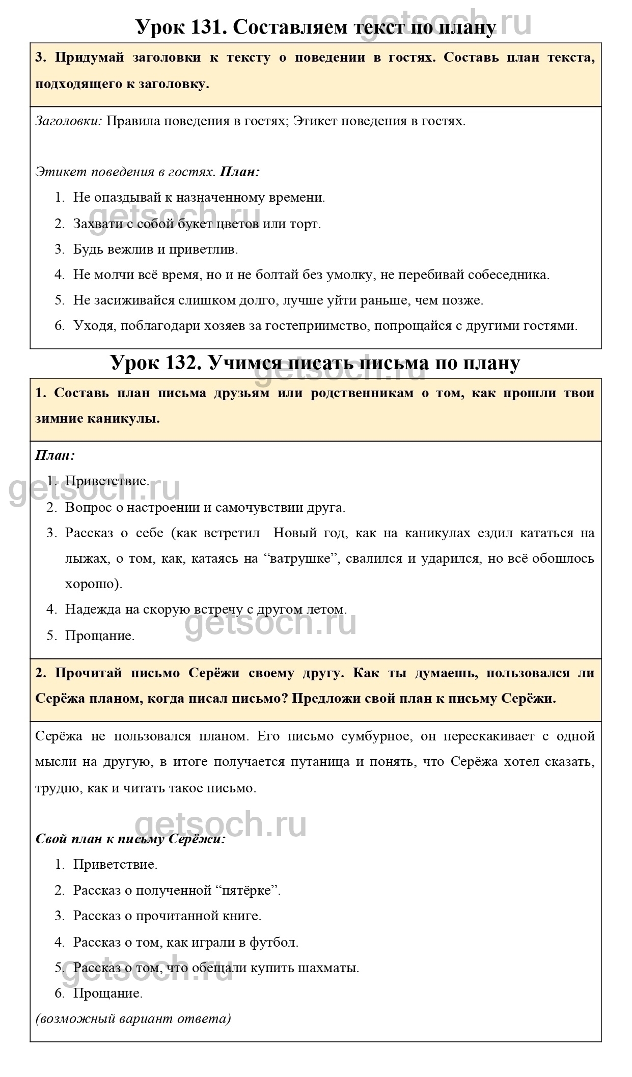 2. Прочитай письмо Серёжи своему другу. Как ты думаешь, пользовался ли Серёжа планом, когда писал письмо? Предложи свой план к письму Серёжи.