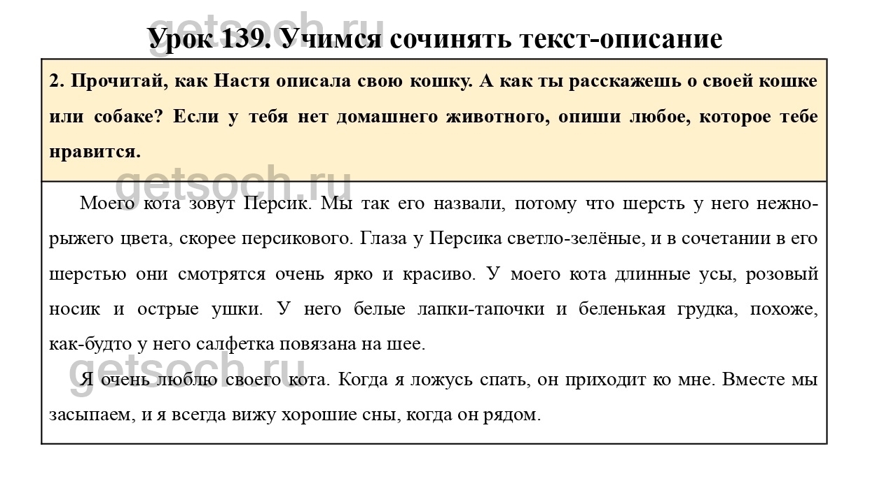 2. Прочитай, как Настя описала свою кошку. А как ты расскажешь о своей кошке или собаке? Если у тебя нет домашнего животного, опиши любое, которое тебе нравится.