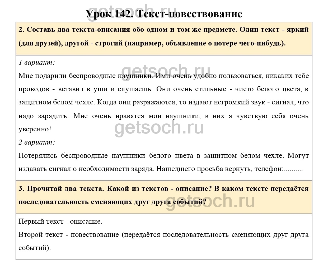 3. Прочитай два текста. Какой из текстов – описание? В каком тексте передаётся последовательность сменяющих друг друга событий?