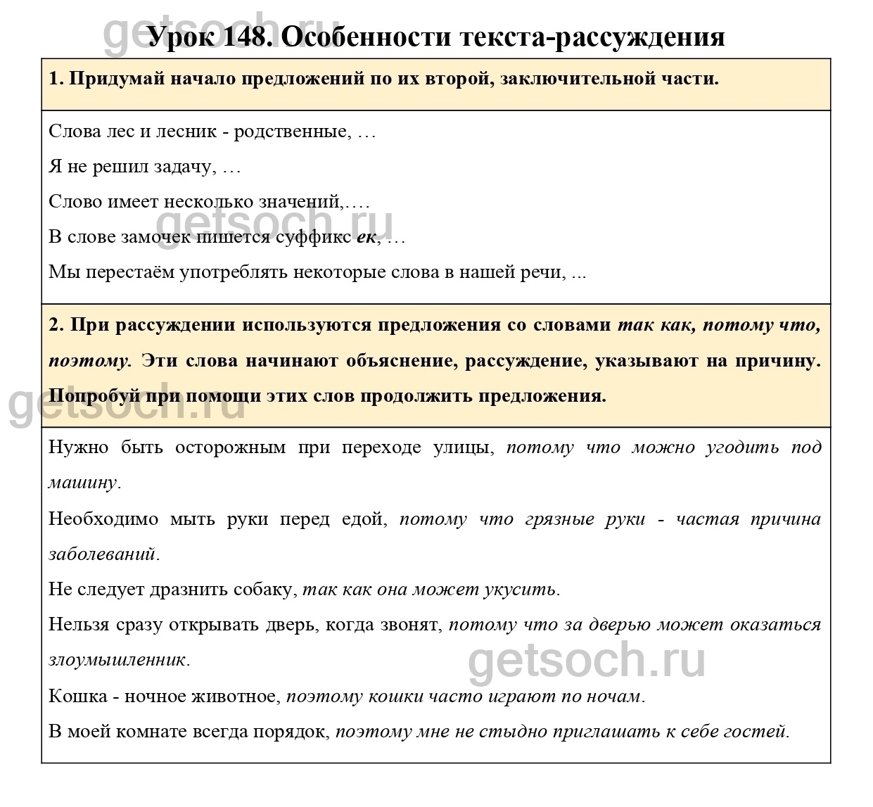 2. При рассуждении используются предложения со словами так как, потому что, поэтому. Эти слова начинают объяснение, рассуждение, указывают на причину. Попробуй при помощи этих слов продолжить предложения.