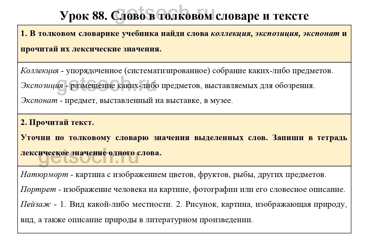 1. В толковом словарике учебника найди слова коллекция, экспозиция, экспонат и прочитай их лексические значения.