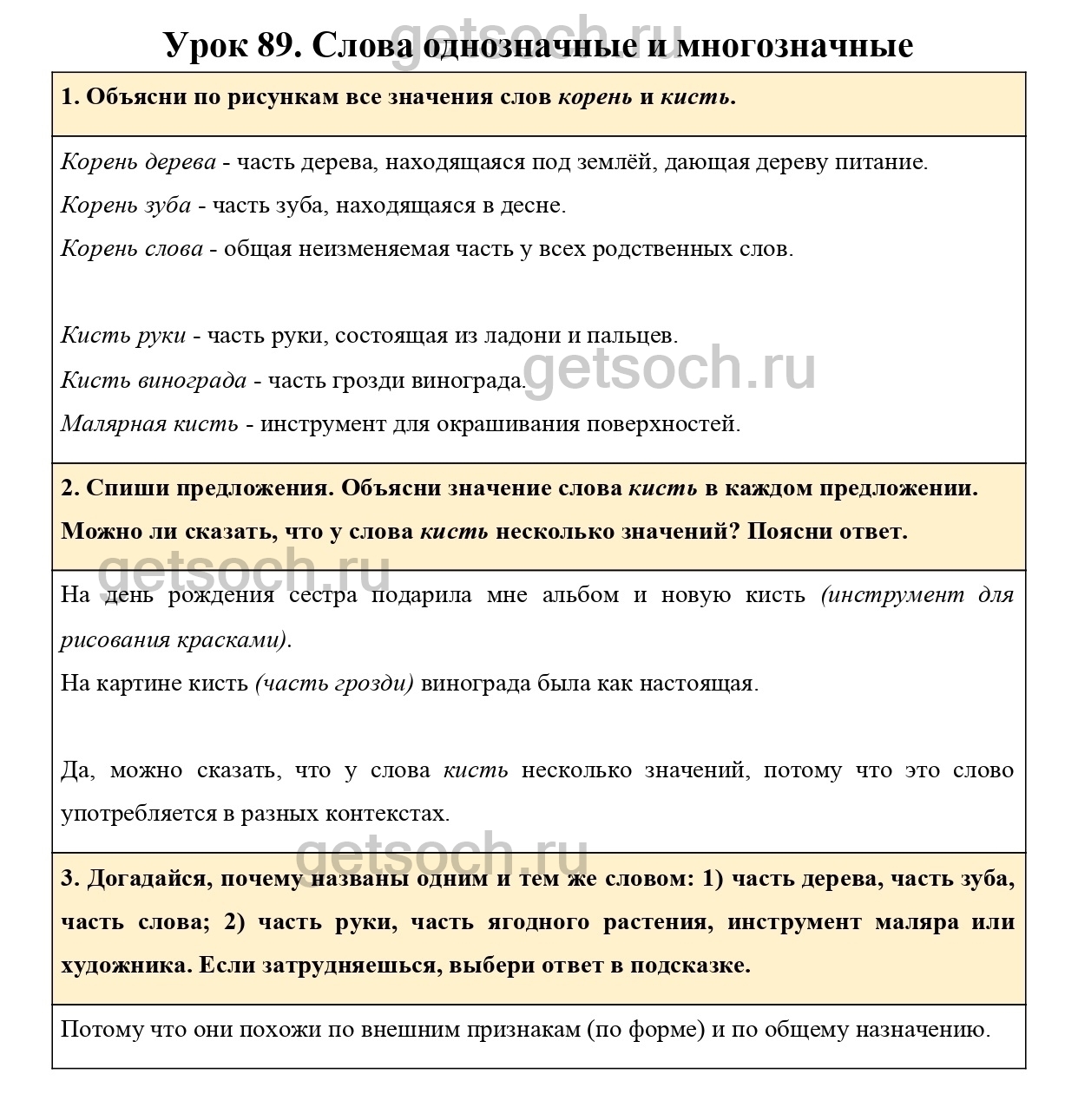 “2. Спиши предложения. Объясни значение слова кисть в каждом предложении.