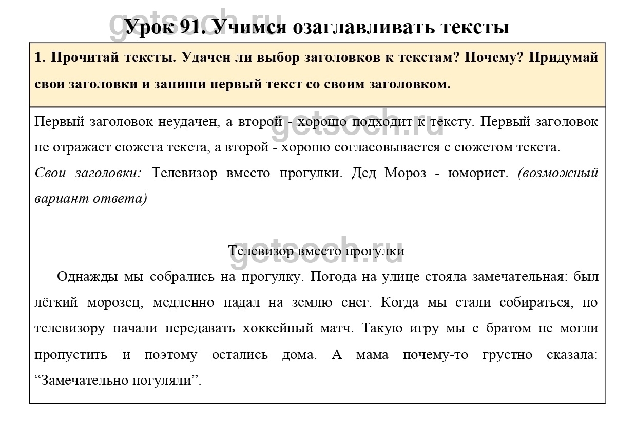 1. Прочитай тексты. Удачен ли выбор заголовков к текстам? Почему? Придумай свои заголовки и запиши первый текст со своим заголовком.