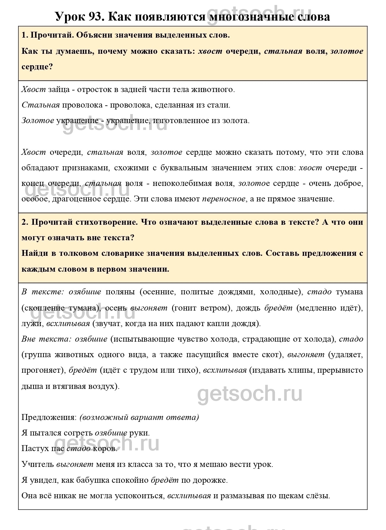 “2. Прочитай стихотворение. Что означают выделенные слова в тексте? А что они могут означать вне текста?