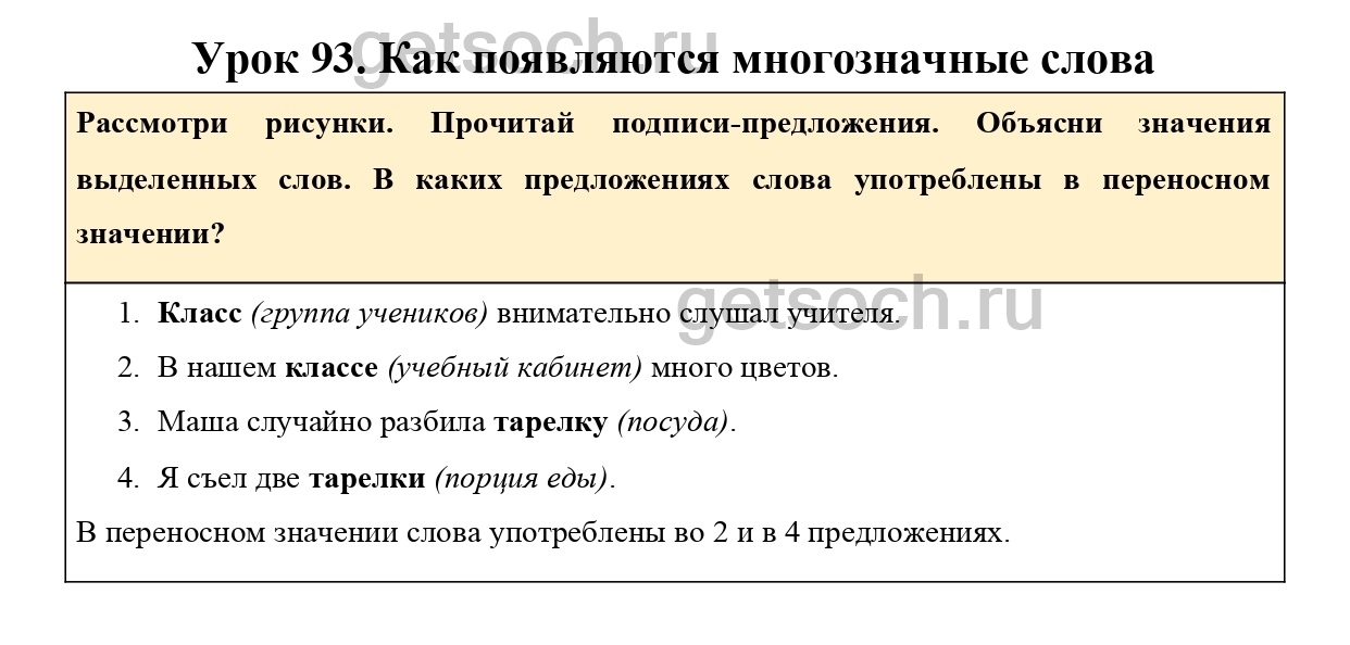 Рассмотри рисунки. Прочитай подписи-предложения. Объясни значения выделенных слов. В каких предложениях слова употреблены в переносном значении?