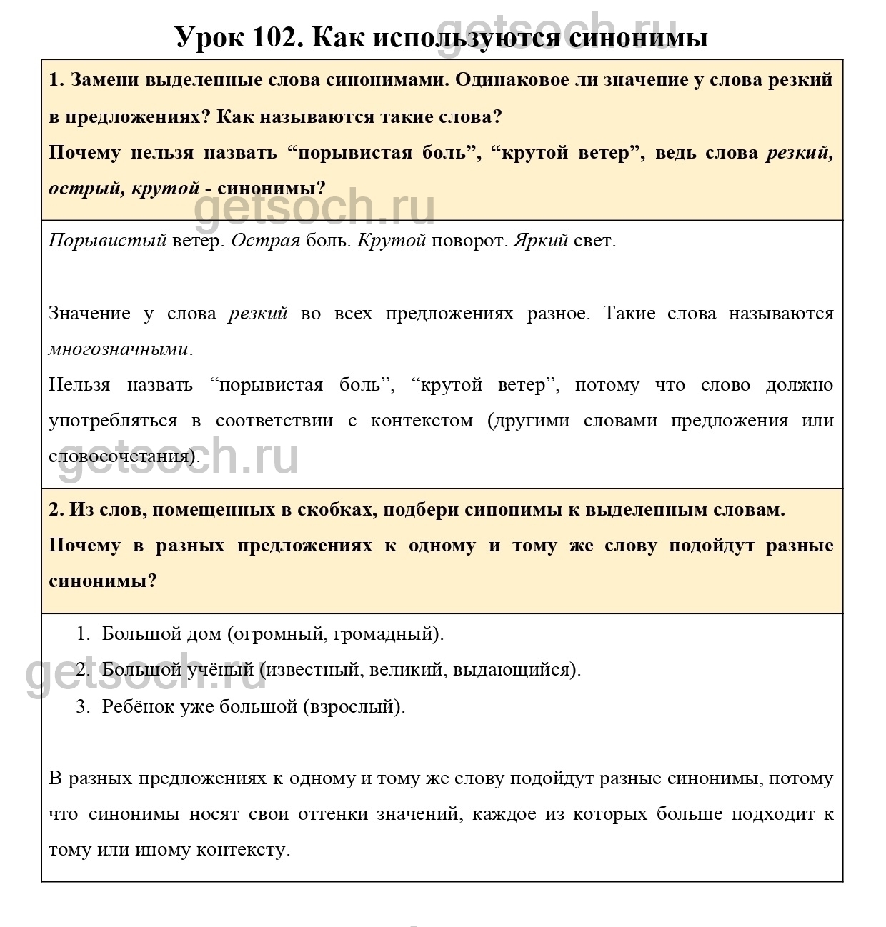 “1. Замени выделенные слова синонимами. Одинаковое ли значение у слова резкий в предложениях? Как называются такие слова?