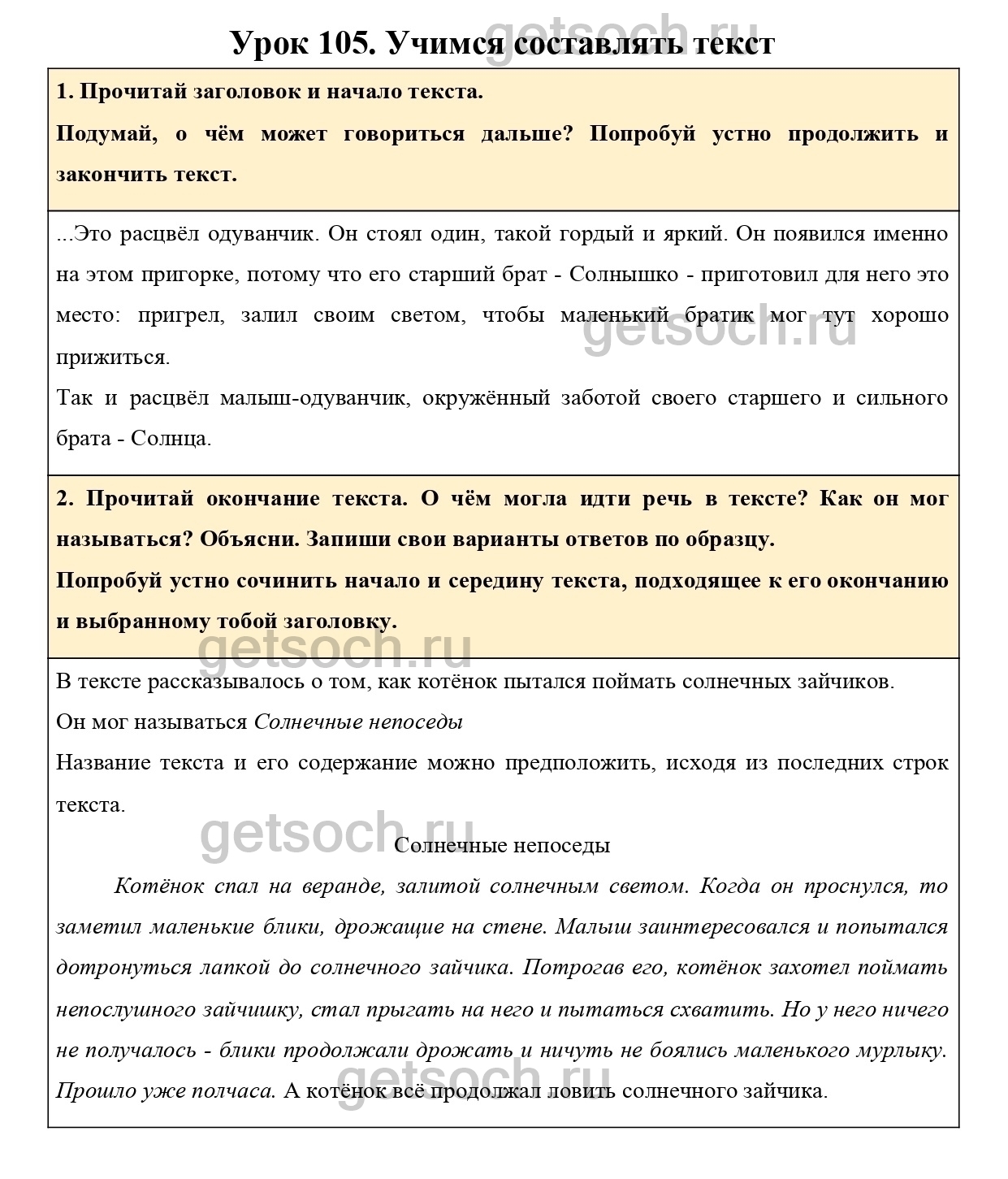 Попробуй устно сочинить начало и середину текста, подходящее к его окончанию и выбранному тобой заголовку.”