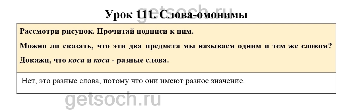 Можно ли сказать, что эти два предмета мы называем одним и тем же словом? Докажи, что коса и коса – разные слова.