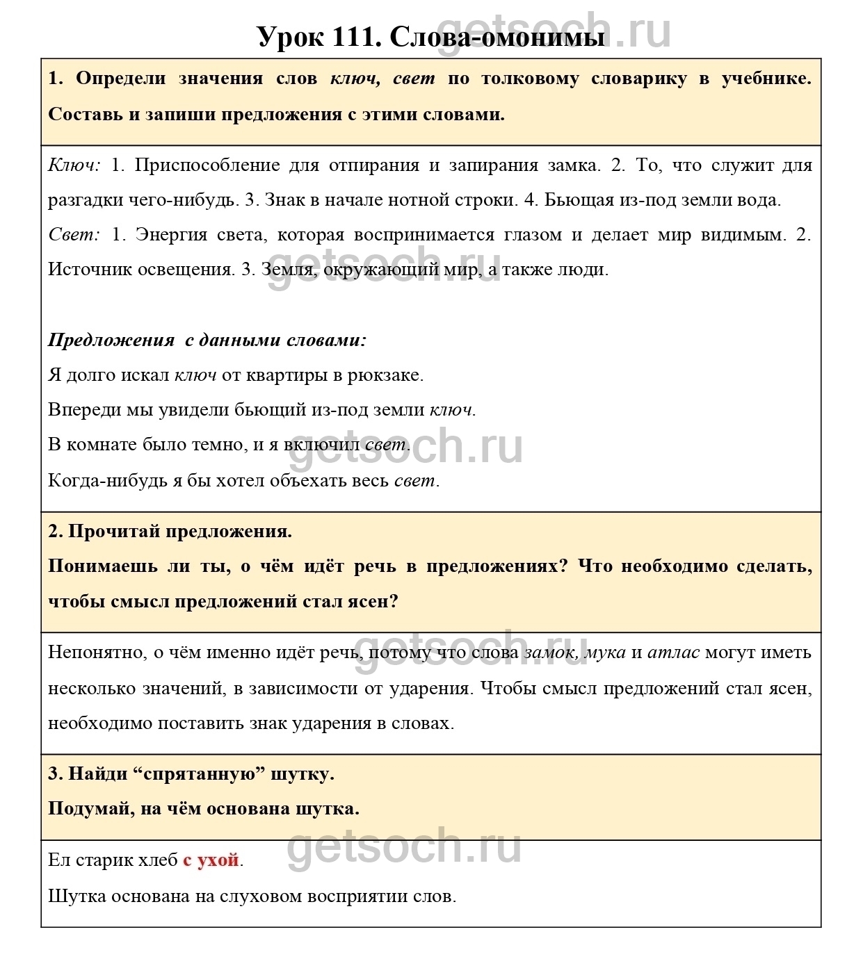 1. Определи значения слов ключ, свет по толковому словарику в учебнике. Составь и запиши предложения с этими словами.