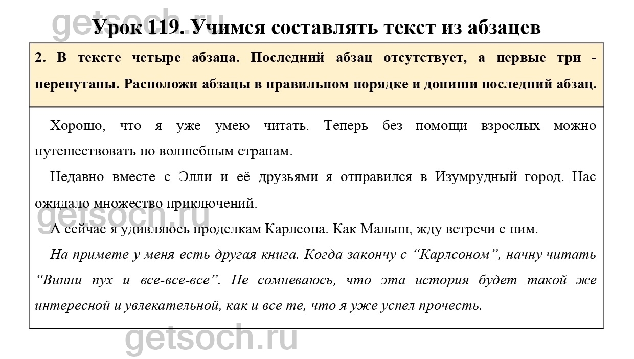 2. В тексте четыре абзаца. Последний абзац отсутствует, а первые три – перепутаны. Расположи абзацы в правильном порядке и допиши последний абзац