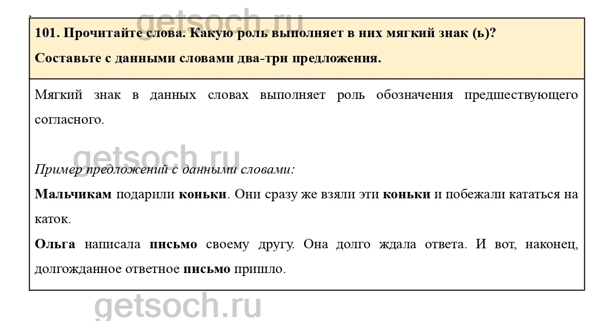 101. Прочитайте слова. Какую роль выполняет в них мягкий знак (ь)?